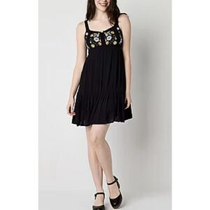 Arizona Jean Co Dress Size XXL Black Floral Embroidered Boho Peasant Babydoll
