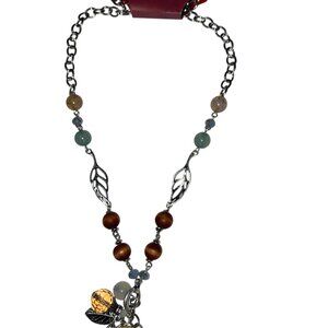 Arizona Jean Co. Fashion Necklace Owl & Leaf Charms Beaded Chain Multicolor 28"