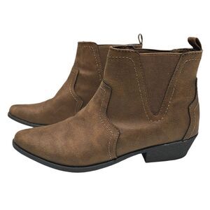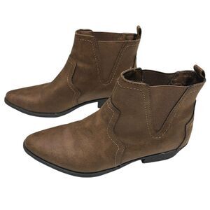 Arizona Jean Co. Faux Suede Brown Ankle Booties Short Western Boots Fall Slip On