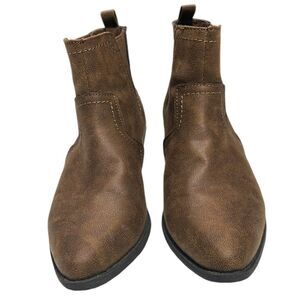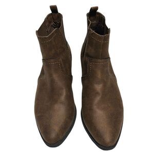 Arizona Jean Co. Faux Suede Brown Ankle Booties Short Western Boots Fall Slip On Shoes