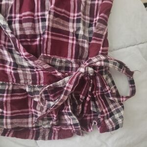Arizona Jean Co Flanel V-neck Wrapped Long Sleeve Tie Side Women's XL Purple EUC
