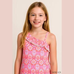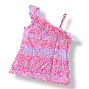 Arizona Jean Co Girls Tank Size Large 6 Fun Orange Pink One Shoulder Ruffle NEW