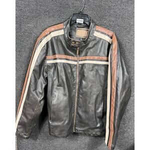 Arizona Jean Co Jacket Mens XL Black Cafe Racer Motorcycle Stripe Full Zip