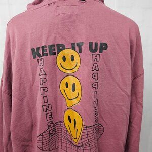 Arizona Jean Co Mauve Distressed Smiley Face Happiness Grunge Rave Hoodie M