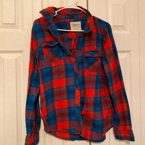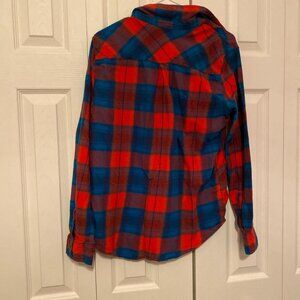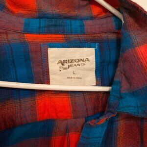 Red and blue plaid flannel shirt from Arizona Jean Co. Made of 100% cotton for a breathable yet warm piece. Perfect for #layering !