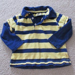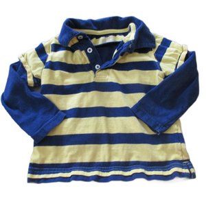 Arizona Jean Co Pullover Polo Shirt Boy Size 24M Blue Yellow Stripe Long Sleeve