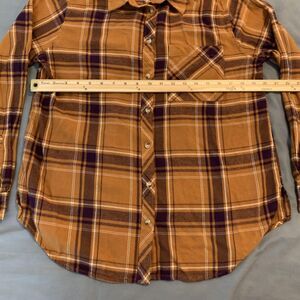Arizona Jean Co Shirt Mens Large Brown Mustard Plaid Flannel Button Up Casual