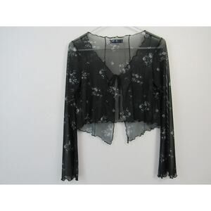 Arizona Jean Co Size Small Semi Sheer Ditsy Floral Print Front Tie Scalloped