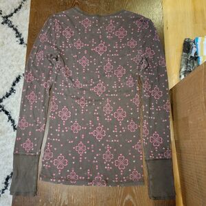 Arizona Jean Co. Tee LS Brown w/ Pink Hearts - Size Youth Medium. Excellent condition. Comes from a smoke free home.