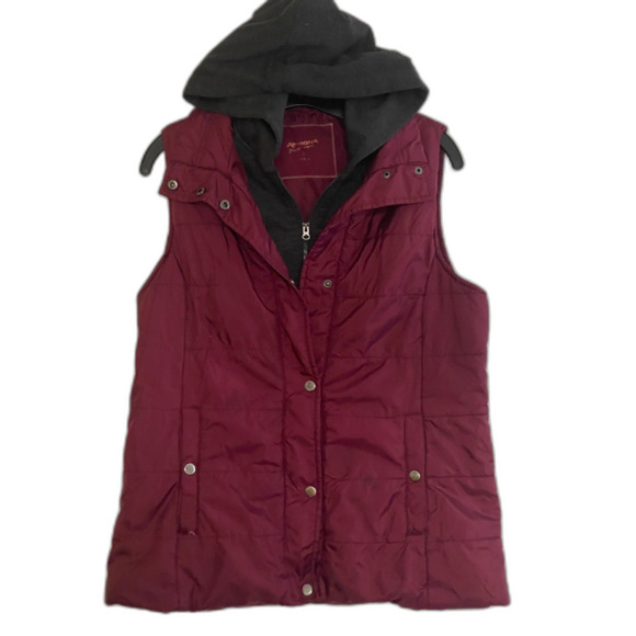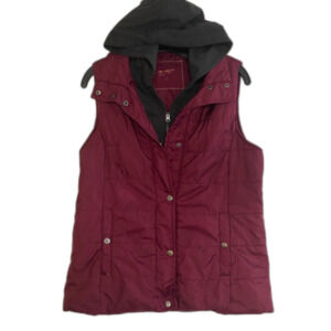 Arizona Jean Co Women's Burgundy & Black Quilted Puffer Vest Hooded Zip Size L