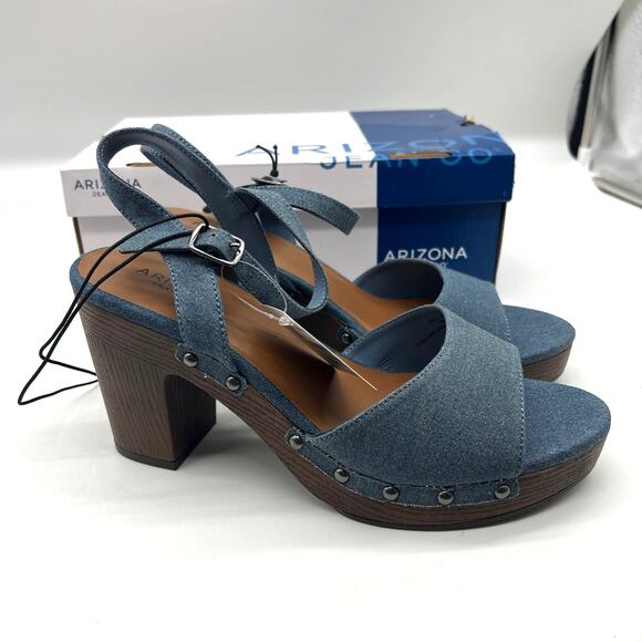 Arizona Jean Co Womens Heather Heeled Sandals Blue Denim Size 9.5M