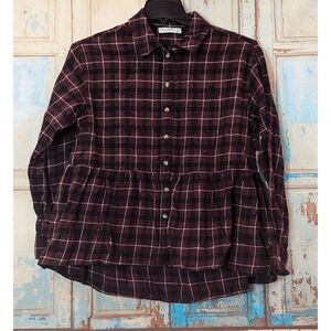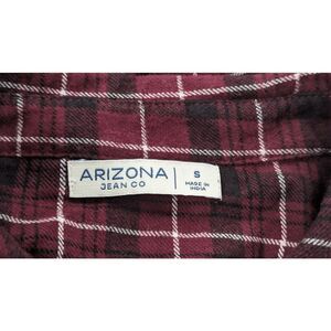 Arizona Jean Co Womens Size Small Wine Multi Plaid Button Front Red Collared