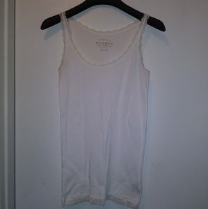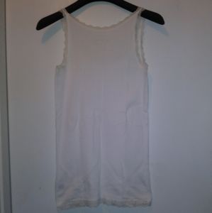 Very gently used tank bundle in excellent condition. Not so basic basics with lace detailing around neckline, straps and hemline. White, grey, and black tank. Tanks have a semi thin strap. Size large. Smoke/pet free.