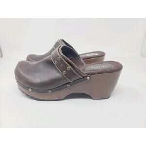 Arizona Jean Company Clogs Brown Faux Leather Women's Size 8 Boho Festival