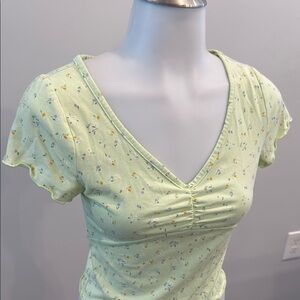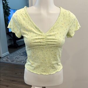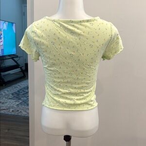 Arizona Jean Company Small Yellow Green Ruched Crop Tee