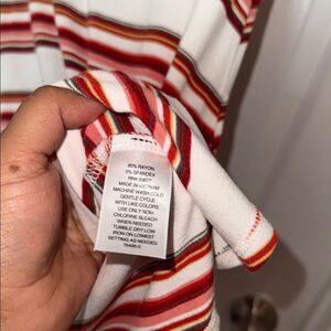 Stylish mini dress with bold red and white stripes. Soft and comfortable fabric. Perfect for casual wear.
