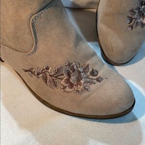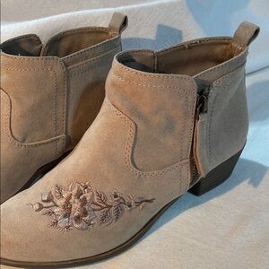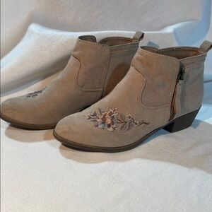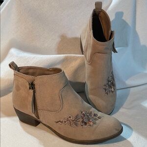 Arizona Jean Company Suede Tan Ankle Booties with Embroidery
