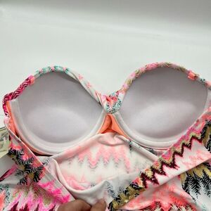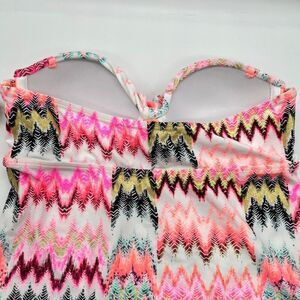 Arizona Jean Company Tankini Swimsuit Top Size Medium Bright Pink Black White