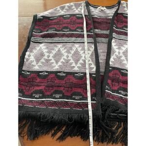 Arizona Jean Company XL Women Open Cardigan Tassle Red Black Geometric See Below