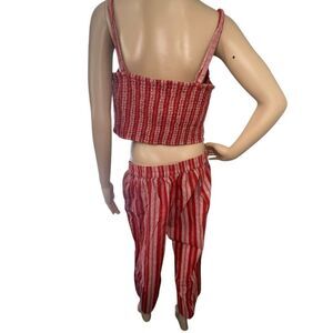 Arizona Jean Company Red Striped Stretchy Two Piece Set With Crop Top With Bow Tie On Front, Pockets On Pants