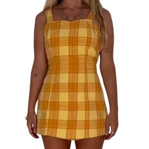 Arizona Jean XXL Plaid Tartan Yellow Mini Dress A-Line Summer Y2K Retro Clueless