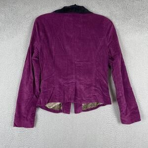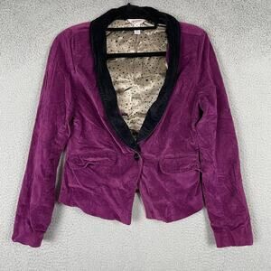 Arizona Jeans Blazer Womens Medium Purple Velvet Black Collar Lined Star Print