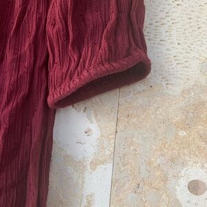 Elegant burgundy top with floral embroidery, perfect for any occasion. The rich color and intricate design add a touch of sophistication to your wardrobe.