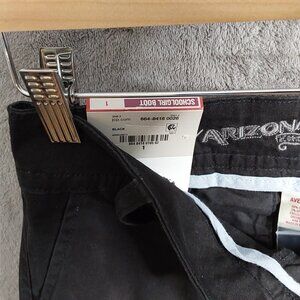 These Arizona Jeans Co. juniors’ black bootcut jeans (style: School Girl Bootcut) are a versatile closet staple. Purchased around 2013, they feature a flattering fit with just the right amount of flare at the bottom. The classic black wash makes them easy to pair with everything from tees to dressy tops.A perfect find if you love Y2K and early 2010s fashion trends—these jeans give off that nostalgic, yet timeless vibe.