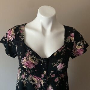 Arizona Jeans Co. Women’s Dark Floral Short Sleeve Mini Dress Size Small 90’s