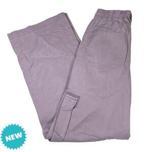 Women's Arizona Jean Co. Wide Leg Cargo Pants in size 0. These stylish lavender pants feature a relaxed wide-leg silhouette with a 24" waist, 32" inseam, and 10.5" rise for a flattering fit. Designed with a partial elastic waistband and adjustable drawstring for comfort, plus functional cargo pockets for a trendy, utility-inspired look. Crafted from a soft and breathable 52% cotton / 48% Tencel™ lyocell blend. New with tags, $54 retail — perfect for casual wear, travel, or laid-back weekends!