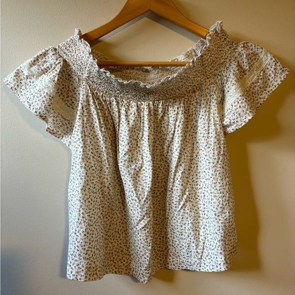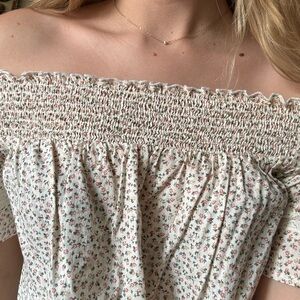 Arizona jeans co white floral off the shoulder top. Bust 15” Length 18”