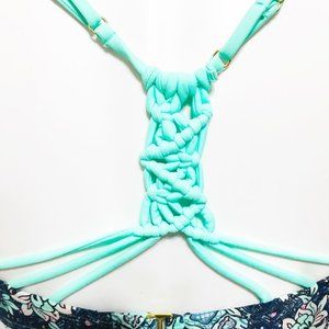 This Arizona Jeans Company Elephant Print Tankini is in a size Junior Medium, and is NEW WITH TAGS. The top has beautiful colors of blue, mint green, pink and white. The back of the top has strapping and a rope weaving style. This does not come with the bottom.