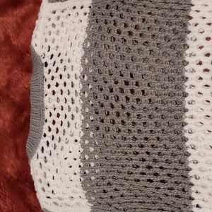 Arizona Jeans Holey Sweater. white and gray in coloring. Used, in good condition. Size L [Juniors] 100% Acrylic.