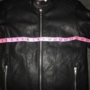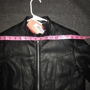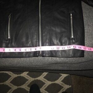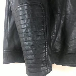 Arizona Jeans Ladies Black Faux Leather Riding Jacket. Full Zip, zip up pockets