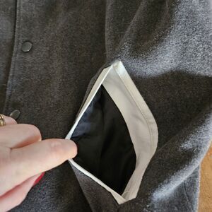 The jacket features a sleek, solid pattern with embroidered accents and a polyester lining for added warmth, making it an ideal choice for the fall, spring, and winter seasons. Practical elements include pockets for your essentials and a durable construction that's dry clean only for maintenance. Embodying a nod to the nostalgic '90s, it's a versatile piece that transcends time with its timeless design and attention to detail.