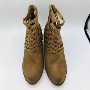 Arizona Jeans Womens Boots 9.5 Olympia Booties Memory Foam Brown Ankle Zip Weave