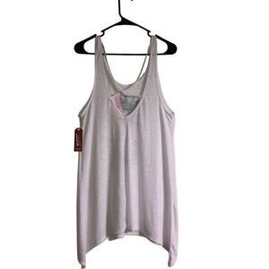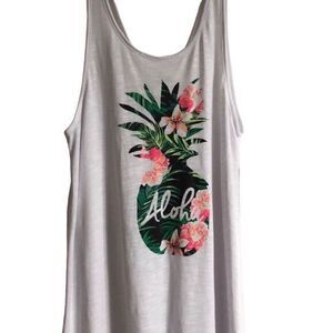 Arizona Jeans tropical floral swimsuit cover.crossed strappy back. Pineapple deco. Asymmetrical hemline. Pit to pit 18”. NWT Size Large