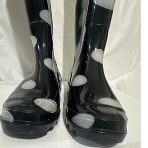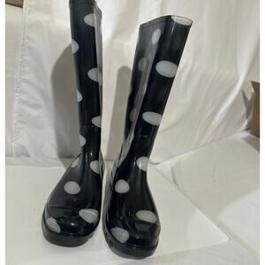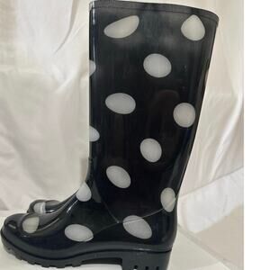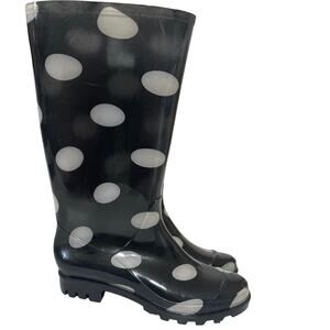 Arizona Jeans rain boots black with white pika dits womens size 9 med. New