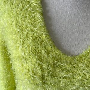 Arizona Jeans Company Lime Green Eyelash V-Neck Cropped Sweater, Small
