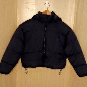 Arizona juniors new slate blue heavyweight cropped puffer coat small. Has faux fur lining. New condition. Measurements are: 28” sleeve (measured from neck seam), 21” from shoulder to hem and 22” from armpit to armpit.