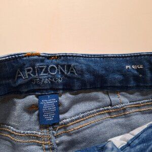 Introducing the Arizona Light Blue Jeans, a chic distressed and ripped style for women. These junior size 7 jeans feature a trendy high rise, perfect for any casual look.
