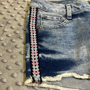 Arizona Light Blue aztec trim Distressed Denim Shorts 5