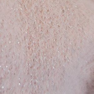 Arizona Sweater size Medium. Cut out V neck, the color is light pink with just enough silver metallic thread to accent the look. This sweater is pre-owned and has no stains, rips or tears. Only worn once and cleaned. The material is a fuzzy faux fur. Very pretty, soft and cozy!