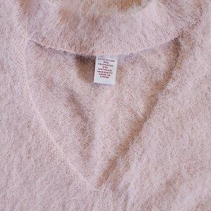 Arizona Light Pink L/S Sweater with cut out V neck Size Medium Fuzzy Faux Fur