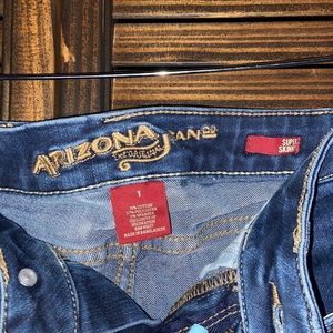 arizona ripped jeans size 1. a little short. slightly over-ripped on the knees and ankles.