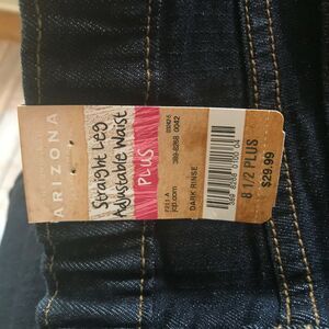 Arizona Straight Leg Dark Rinse Jeans NEW NWT 8.5 Plus Adjustable Waist