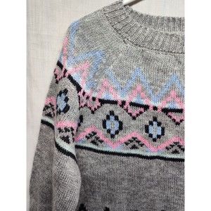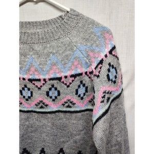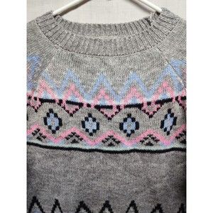 Arizona Sweater Womens XLarge Gray Geometric Print Acrylic Knit Long Sleeve