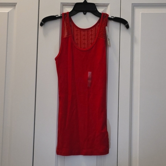 *NWT* Arizona Jean Co. red tank with lace detailing in straps & back. Pet free & Smoke free home.