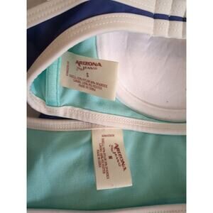 Arizona Woman's Size Sm/Md 2 Piece Swimsuit Bikini Blue Pink Teal White