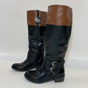 Arizona Women's Denver Riding Boots in Black/Brown Block Heel sz 5 Wide Calf